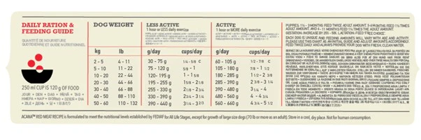 ACANA recipes are thoughtfully crafted from start to finish with delicious, quality ingredients. With a balanced 50/50 split between rich meat ingredients and nutritious fruit, grains and vegetables, ACANA Classics Red Meat recipe provides your dog with a filling and nutritious meal crafted from simple, wholesome ingredients. It also includes nutrient-rich ingredients that support three key health benefits, including immune function, healthy digestion, and healthy skin and coat.