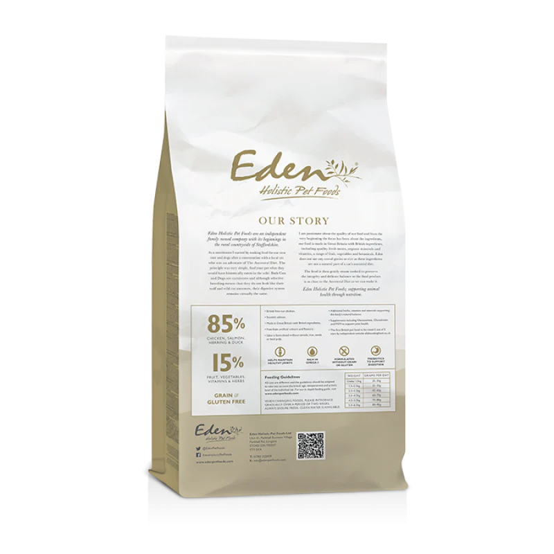 Our kibble consists of free-run chicken, Scottish salmon, North Atlantic herring, Suffolk duck and whitefish. It boasts an 85% meat content, which makes it one of the highest protein cat foods made in the UK and on the UK market.